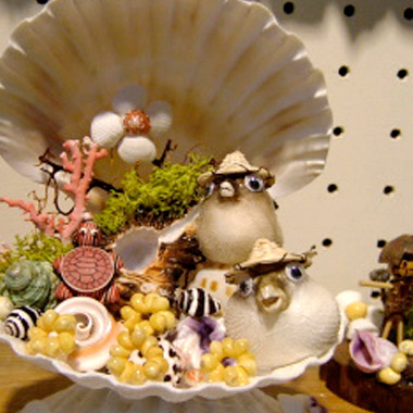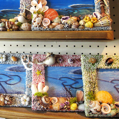 澎湖風景明信片、 彩色扇貝夜燈 、貝殼筆記本、貝殼綜合籃包組、 燈塔瓶 、