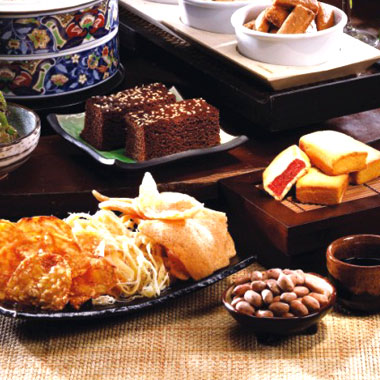 鮮蝦餅花生酥、花生糖、帶殼花生、蜜汁魷魚片、魚中骨、黑糖冰心、小管片、