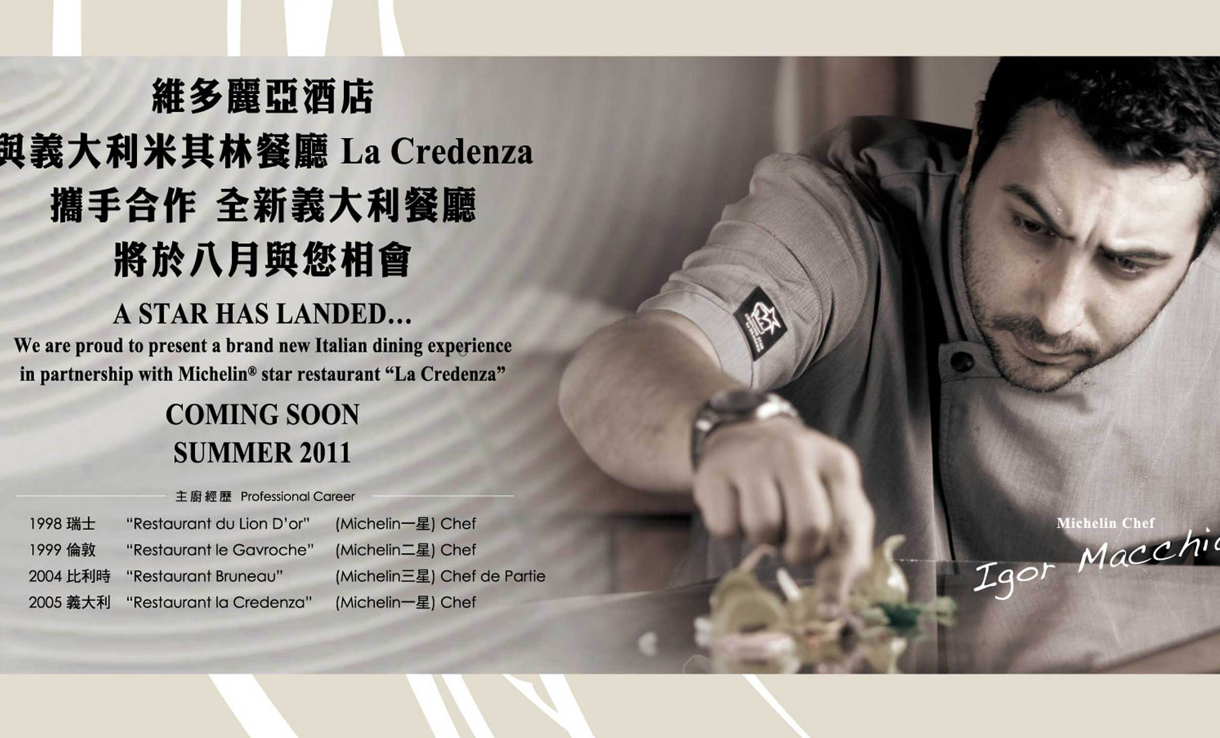 We are proud to present a brand new Italian dining experience in partnership with MichelinR star restaurant “La Credenza”